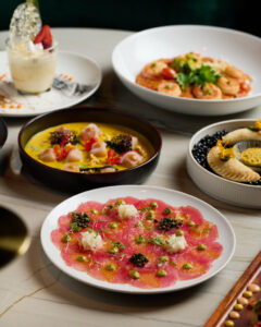 La propuesta gastronómica recorre sabores internacionales con cortes de carne premium, pastas artesanales y una destacada barra de sushi, acompañados por una carta de cócteles bien elaborados.