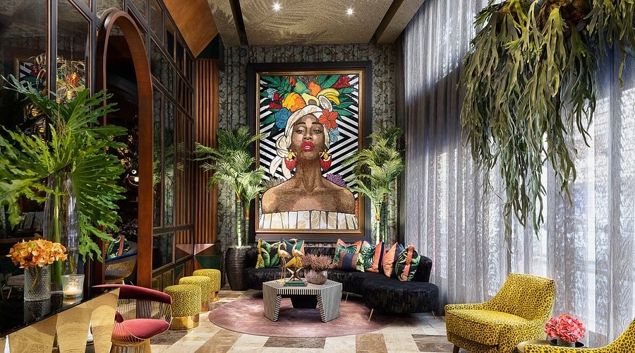 Su ambiente rinde homenaje al Art Déco tropical, con una estética marcada por el color y los detalles decorativos que crean una experiencia visual envolvente.