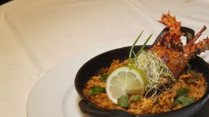 La propuesta gastronómica celebra los sabores locales desde una visión moderna, con ceviches, arroces marineros y preparaciones que equilibran lo dulce y lo salado.