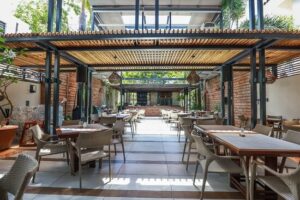 Su estructura sorprende desde la entrada: un interior abierto, con techos altos, vegetación integrada y un concepto de jardín vertical que transforma el ambiente en un oasis urbano dentro del casco histórico. La piedra colonial se mantiene como testigo del pasado, mientras el diseño moderno aporta frescura y una estética vibrante que lo hace visualmente inolvidable.